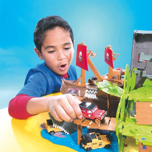 - Comes with a crocodile, firing gun, pirates, treasure, and Matchbox car