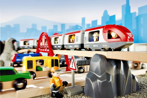 The BRIO Travel Switching Set is a fabulous wooden train set. My five year-old loves it and will spend literally hours playing with it, making up scenarios and taking the layout apart and putting it back together. BRIO is a great brand and this set will last you through multiple children.
